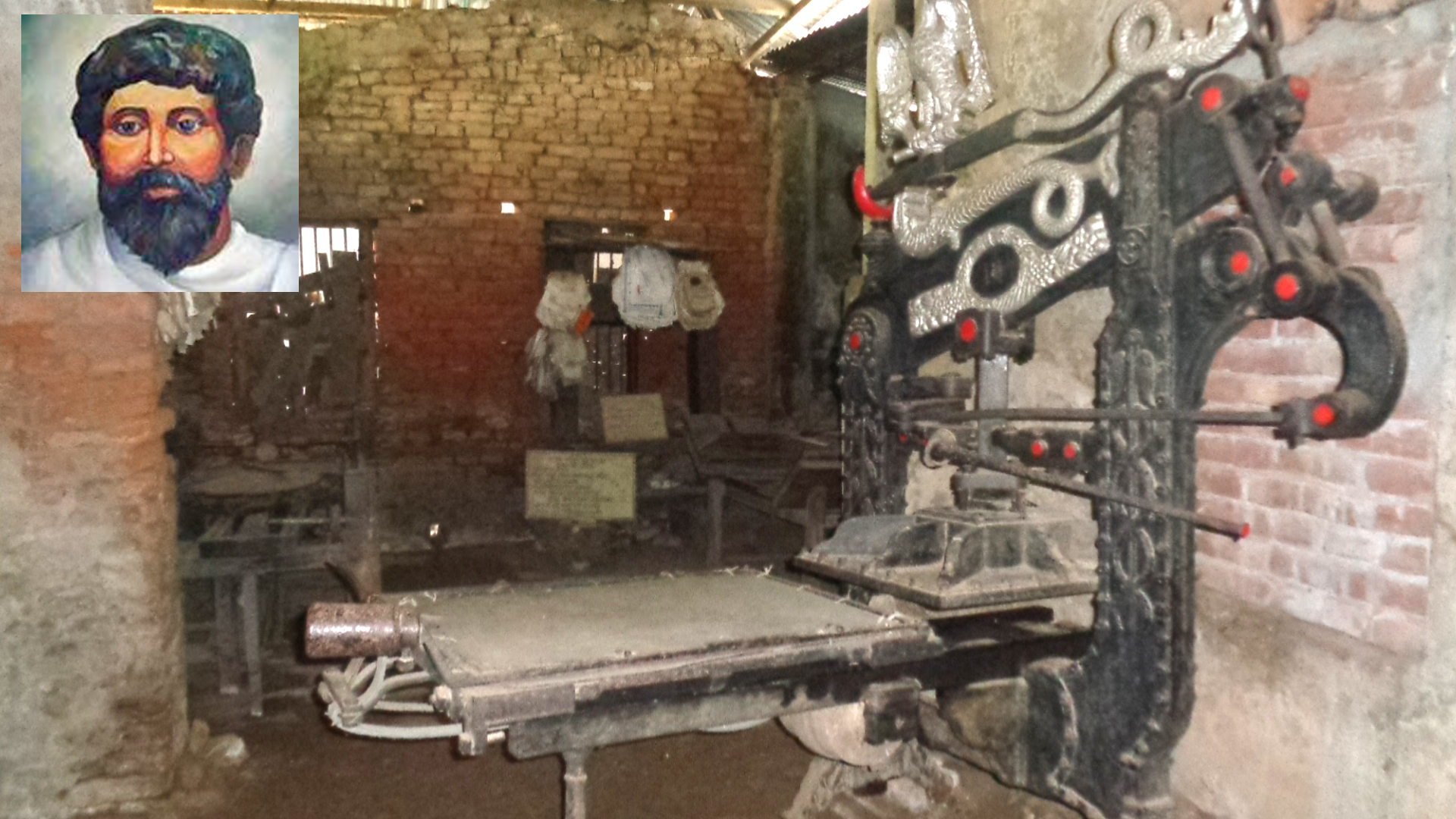নেপথ্য কথা : কাঙালের বাড়ির আঙিনায় এক ছাপড়া ঘরে প্রেস বসান হলো। অভিষেক হলো ফুল-চন্দন-সিঁদুর দিয়ে। কথা লেখার এক আজব যন্ত্রটা দেখার জন্য ভিড় বাড়তেই লাগল। খোদ রাজার দেশের যন্ত্র। ভাব ও ভক্তিতে অনেকে হাটু গেড়ে প্রণামও করতে কুন্ঠিত হলো না। ডবল ক্রাউন সাইজের বিশাল মেশিন। ওজন আনুমানিক ৩৫ মন। দেখতে মানুষরূপী এক দানবের মতো। মেশিন চালু হলে দেখা যাবে মাথার উপরে ডানা প্রসারিত করে এক ঈগল পাখি উড়ে যাচ্ছে। আবার পাখিটি উড়ে এসে যথাস্থানে বসে পড়ছে পেছনে থাকা এক পরিটা উড়াল দিলেও পাখিটাকে ধরতে পারছে না। মেশিনের দু অংশে গম্বুজের গায়ে এক জোড়া হুরপরী আপন ভাবণায় দাড়িয়ে রয়েছে। অক্টোপাশে তাদেরকে ধরে রেখেছে হাঙ্গর মাছ। পরিরা চোখ টিপ্পনি দিয়ে তাদেরকে মুক্ত করতে ইশারা দেবে। কিন্তু আপনি একজন বীর পুরুষ হলেও তাদেরকে মুক্ত করতে পারবেন না। এই মেশিন চালিয়ে কাগজ বের করতে ৩ জন মানুষের প্রয়োজন হয়। ১ জন ইন্কম্যান, পেপার ইন ও আউটে ১ জন, ড্রাইভ ম্যান ১ জন। মেশিনের চার পায়ের থাবাটা আরো ভয়ঙ্কর। যেন তা আঁত্কে উঠার মতো এক সিংহের থাবা। মেশিনের বুকের মাঝখানে ডিম্বাকার চাত্কি আছে। তা স্বর্ণের রং এ জ্বল জ্বল করে এখানে ইরেজির বিভিন্ন লেটারে লেখা আছে, ঈড়ষঁসনরধহ চৎবভং, ঘড় ১৭০৬, ঊউডঅজউ ইঊ ঠঅঘ, খঅঞঊ: ঈষুসবৎ উওঢঙঘ ্ ঈঙ, ঙজএওঘঅখচঅঞঊঘঞঊঊঝ ্ গধহঁভধপঃঁৎবৎং ১০ ঋওঘঝইটজণ ঝঞ ১৮৬৭ খঙঘউঙঘ.