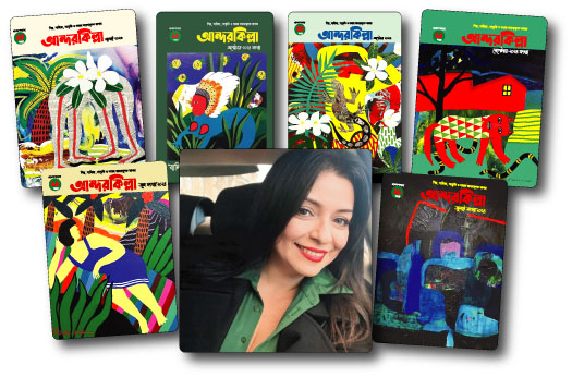 শিল্পসাহিত্য ও সমাজভাবনামূলক কাগজ ‘মাসিক আন্দরকিল্লা’র জুলাই-২০২৩ সংখ্যা। প্রচ্ছদে ব্যবহৃত স্নিগ্ধ ব্যতিক্রম একটি ছবি দেখে চোখ আটকে গেলো। রঙের এমন ঝকমকে ব্যবহারে হঠাৎ চোখ ধাঁধিয়ে যায়। কিন্তু ক্ষণকাল পর দৃষ্টি স্থিত হলে দেখি, বহুমুখী ভাবনা মাথা চাড়া দিয়ে উঠছে। ছবির ধরন দেখে কোনো চেনাজানা শিল্পীর কাজ বলে মনে হোলো না। ‘আন্দরকিল্লা’ সম্পাদক, বন্ধু নুরুল আবসার সূত্রে জানতে পারি,শিল্পী দেশি নন, বিদেশি- আজারবাইজানি। নাম- রামিনা সাদাতখান। সুদূর আজারবাইজান তাঁর জন্মদেশ।
